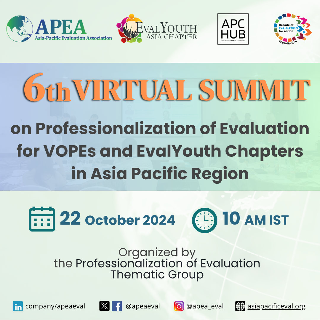 6th Virtual Summit on Professionalization of Evaluation for VOPEs and EvalYouth Chapters in the Asia Pacific Region